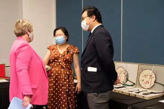 城市生活步入美学时代是南北半球两座繁荣宜居之城的发展共鸣,主办方苏州简素山房把这一理念用江南文化孕育出的姑苏好物来呈现。展品主推中国苏绣大师卢建英女士作品,以中英文双语苏绣技艺视频推送结合现场讲解,将苏绣文化艺术进行城市之间的审美对话;《书林话旧》系列古籍团扇把中国美好的寓意“善”与苏州深厚的人文底蕴带到了大洋彼岸。生活美学,美学生活,遇见江南,姑苏好物。苏州元素与城市生活的美学融合,这直观的体验得到了与会者的高度评价,甚至在展会期间当场售出了多件苏绣作品。